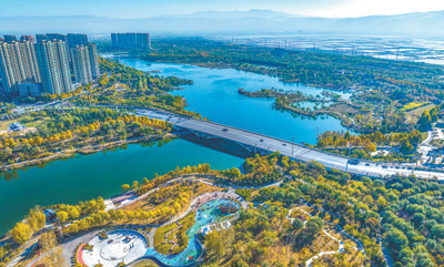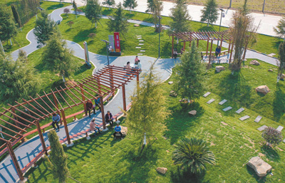 各地把绿色发展理念融入城乡规划建设管理之中,不断完善城市公园体系和绿道网络,高品质生态环境成为城市高质量发展的重要支撑。图为山西省运城市禹都公园,草木茂盛,景色怡人。 |