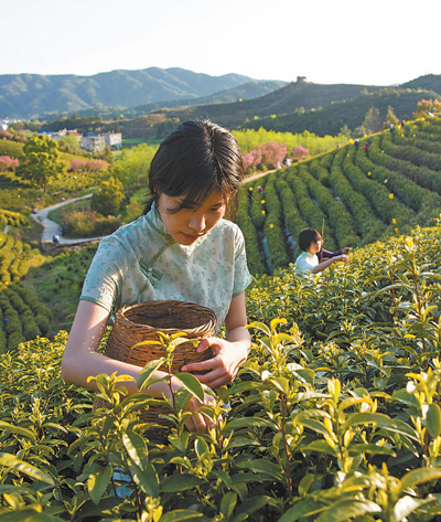 春日携篓采摘忙,