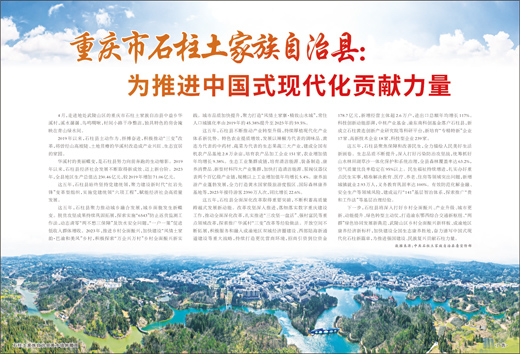 下一步,石柱县将深入打好乡村全面振兴、产业升级、城市更新、动能提升、绿色转型主动仗,打造渝东鄂西综合交通新枢纽、“两群”绿色协同发展新典范、武陵山区乡村全面振兴新样板、成渝地区康养经济新标杆,加快建设全国生态康养胜地,奋力谱写中国式现代化石柱新篇章,为推进强国建设、民族复兴贡献石柱力量。