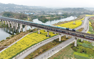 2021年,“熊猫专列”观光旅游列车推出,先后从成都开行至峨眉山、西昌、攀枝花,以及贵州、新疆、甘肃、云南等地,旅游列车将旅游观光、当地文化与火车出行线路深度融合,快进慢游、一线多游、省心便捷,受到了游客们欢迎。