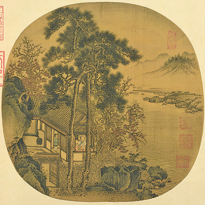 中国画《秋窗读易图》,作者宋代刘松年(传)。 |