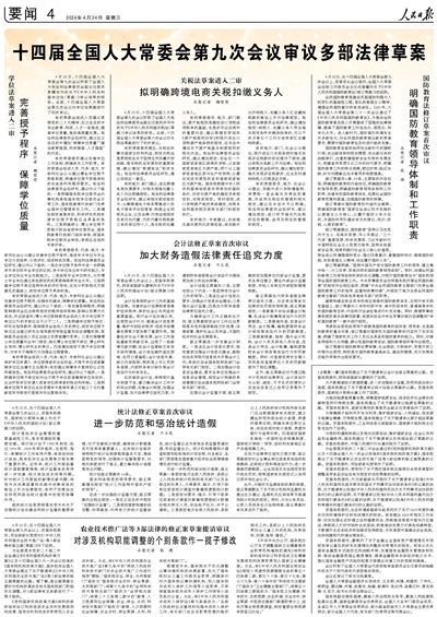 十四届全国人大常委会第九次会议审议多部法律草案