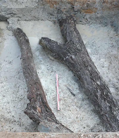 施岙遗址出土的古树木遗存。 |