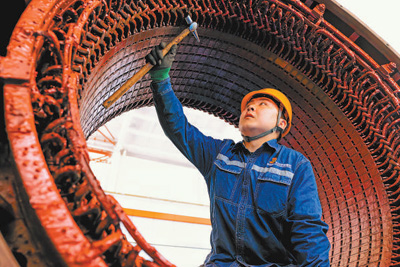 在包(头)神(木)铁路机务分公司东胜检修设备车间,青年职工正对机车主发电机部件进行质量检查。 |