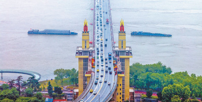 5月5日,“五一”假期最后一天,江苏南京长江大桥迎来返程车流高峰。