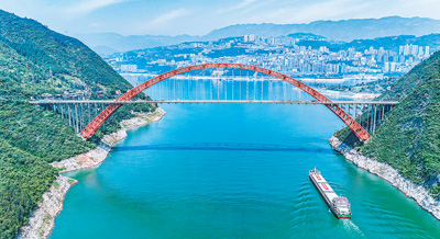 图为5月8日,首艘万吨级江海直达船“创新5”轮驶过长江三峡巫峡段水域。