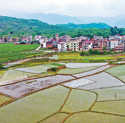 5月10日拍摄的湖南省永州市新田县龙泉街道上庄村,远山青翠,田园阡陌纵横,与错落有致的民居构成一幅美丽乡村画卷。近年来,新田县坚持绿色发展,全力建设生态宜居的和美乡村。