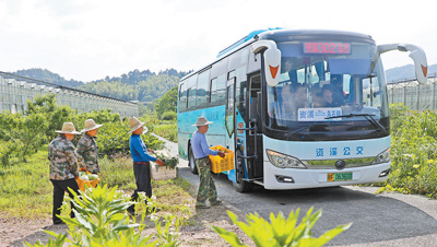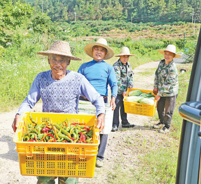 5月16日,资溪县乌石镇陈坊村菜农将蔬菜搬上新能源公交车。 |