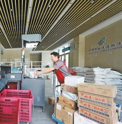 5月16日,资溪县客货邮集散中心快递分拣处,工作人员在分拣货物。 |