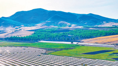 内蒙古自治区兴安盟坚持生态优先、绿色发展,大力发展光伏发电、风电等清洁能源项目,优化产业结构,构建低碳能源体系。图为5月20日,兴安盟一处光伏发电场的光伏面板整齐排列。