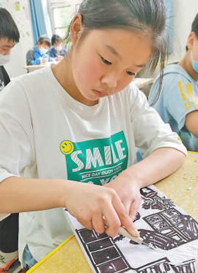 “美是有力量的。”在周墙看来,让更多孩子认识了解传统木刻版画、掌握制作技艺,不仅可以用版画作品展示中小学美育成果,还能促进对传统技艺的保护传承。