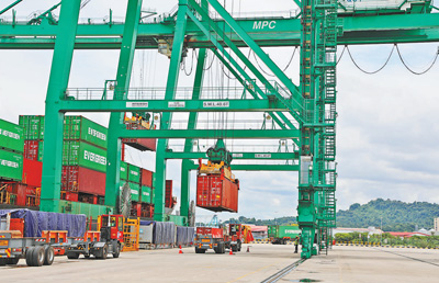 文莱摩拉港码头正在进行跨境电商集装箱装卸作业。文莱摩拉港由中国和文莱合资企业——摩拉港有限公司运营。 |
