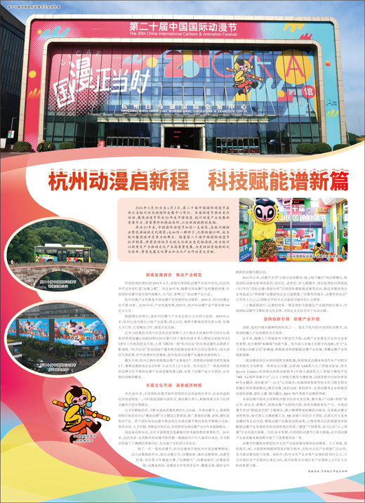 近年来,随着人工智能技术不断迭代升级,动漫产业发展也正在经历变革性重塑,充分展现“AI赋能”的新气象。杭州深入实施文化数字化战略,发力“人工智能+动漫文化”新赛道,积极推进科技赋能动漫产业发展,勇攀动漫产业发展新高峰。