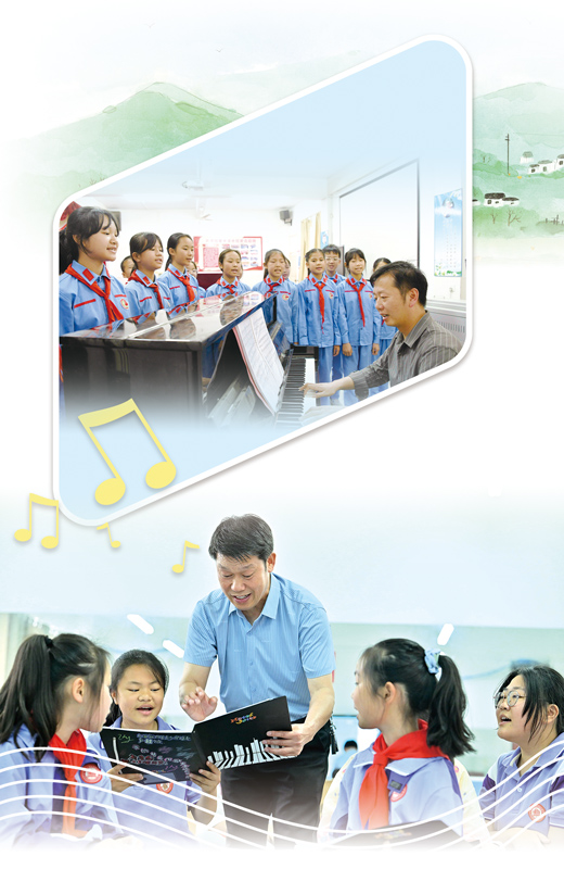 “把握好分练与合排,注重曲子完整度练习,以唱为主,以演为辅,在音准、音色和节奏中不断磨合,通过反复排练实现高低声部的和谐统一,让合唱的魅力随着乐音‘流淌’进孩子们的心灵。”钟源兴说。