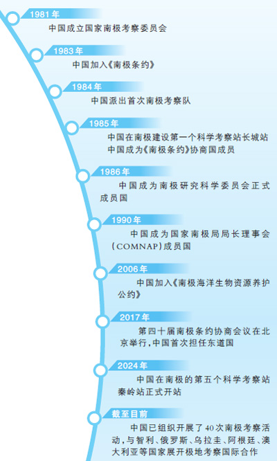 2017年,第四十届南极条约协商会议在北京举行,这是中国自1983年加入《南极条约》、1985年成为《南极条约》协商国成员以来,首次担任东道国。自加入《南极条约》以来,中国始终坚持平等协商、互利共赢,拓展南极合作领域和范围,促进国际合作的长期化、稳定化和机制化。