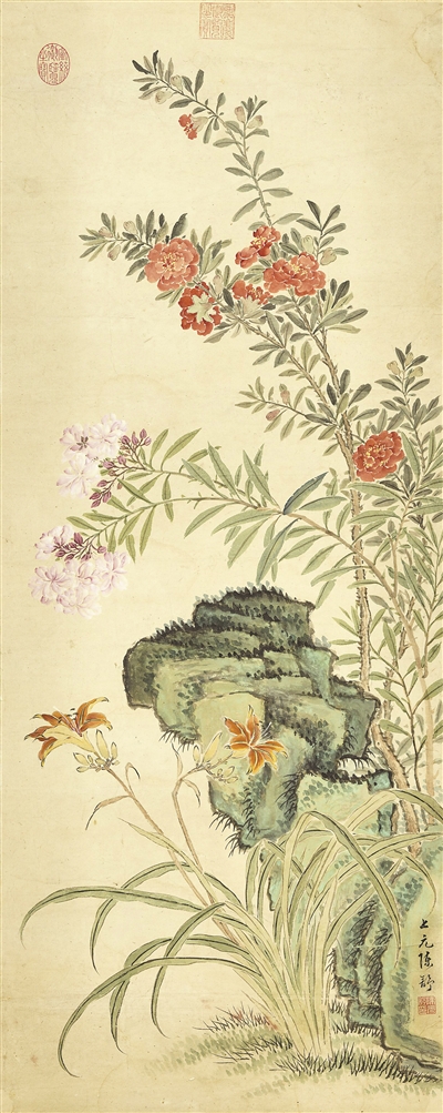 中国画《天中佳卉图之一》,作者清代陈舒。 |