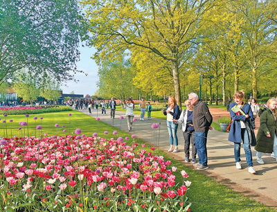 置身荷兰阿姆斯特丹近郊的库肯霍夫公园,仿佛步入花的王国,百万株郁金香争奇斗艳,吸引游客驻足(见图二,本报记者牛瑞飞摄)。世界郁金香协会主席宝贺深介绍,郁金香最早出现在天山山脉和帕米尔高原,16世纪被引入欧洲。1593年,荷兰植物学家克鲁修斯在莱顿大学植物园种植了荷兰第一批郁金香。如今,郁金香是荷兰种植最广泛的花卉,占花卉总产量的47%。