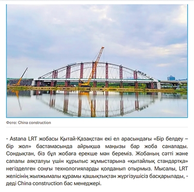 “阿斯塔纳轻轨项目是中哈共建‘一带一路’具有特殊重要性的项目。因此,我们特别重视这个项目。为了项目的高质量完成,我们采用基于中国标准的最新技术进行施工。例如,轻轨线路的机车车辆采用自动驾驶系统远程控制,无需驾驶员。”中建六局交通建设公司相关负责人表示。 |
