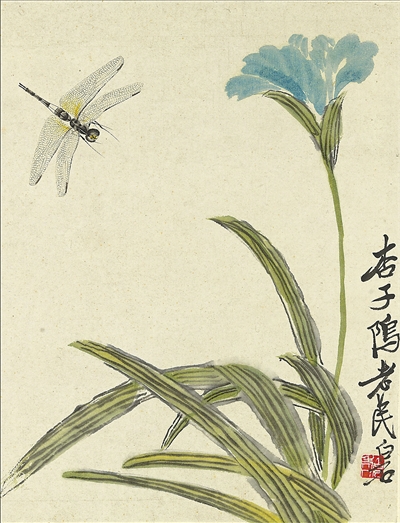 中国画《花卉蜻蜓》,作者齐白石,中国美术馆藏。