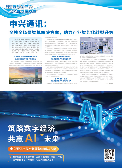 构建技术生态,共创智慧未来。中兴通讯全栈全场景智算解决方案,通过软硬解耦、训推解耦、模型解耦,推动能力组件化和共享赋能,加速AI技术的创新和商业化,构建开放的技术生态。未来,中兴通讯将加大国产化智算方案研发力度,与行业内合作伙伴一起,通过优势互补,助力我国AI产业全球竞争力的提升。
