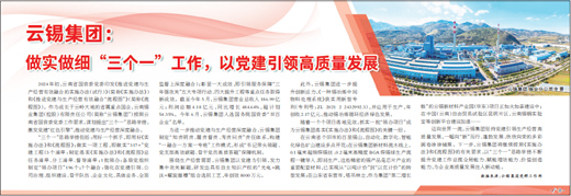 迈向世界一流,云锡集团坚持党建引领生产经营高质量发展,一幅向“新”而行、蓬勃发展、欣欣向荣的多彩画卷徐徐铺展。下一步,云锡集团将继续按照《实施办法》和《流程图》的有关要求,以“三个一”思路举措不断提升党建工作总揽全局能力、赋能增效能力、价值创造能力,为企业高质量发展注入新动能。