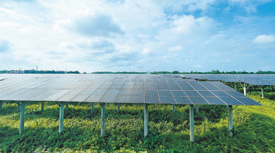 由中企投资的孟加拉国迈门辛光伏电站项目2020年底投入运营,约17万块来自中国的太阳能电池板将太阳能转化成电能照亮千家万户。该电站每年帮助孟加拉国减少碳排放超过5万吨。图为孟加拉国迈门辛光伏电站项目一景。