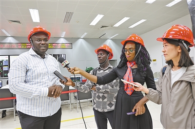 中加记者在深能安所固电力(加纳)有限公司中控室采访加方工程师。 |