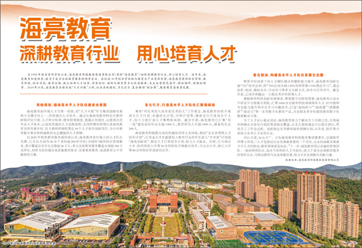 自1995年创办首所学校以来,海亮教育科技服务集团有限公司(简称“海亮教育”)始终深耕教育行业,用心培育人才。近年来,海亮教育加速转型,致力于成为全球教育服务的领军企业。依托近30年的办学经验与教育全产业资源优势,海亮教育提供综合管理、教育科技、综合实践、教育后勤、拔尖创新人才培养、师资培训、国际化教育等多元优质服务,自主运营特色高中、精品园所、特教机构等。2019年以来,海亮教育全面实施“人才兴教”工程,打出系统谋划、多元引才、复合驱动“组合拳”,服务教育高质量发展。