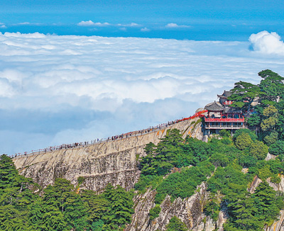 暑期以来,旅游市场持续升温,多地迎来文旅消费热潮。近日,陕西省华山风景名胜区与当地铁路部门推出免费乘坐动车“夜爬华山”等活动,大批游客被吸引而来。图为华山风景名胜区西峰景点。