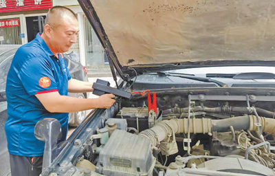 到达目的地,崔敬辉从后备箱里取出汽车应急启动电源,直奔求助车主。“这就是亏电,点着了就行。”打开车前盖,把应急启动电源线路两端夹在电瓶的正负极上,仅用两分钟,汽车便顺利启动了。“电瓶时间久了,下次检修的时候请修车师傅一块看看。”临走时,崔敬辉还不忘跟车主嘱咐几句。