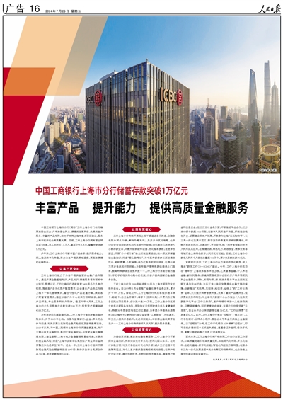 中国工商银行上海市分行储蓄存款突破1万亿元 丰富产品 提升能力 提供高质量金融服务