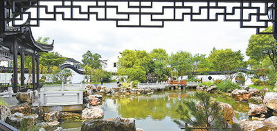 宜兴东北角的和桥镇闸口村,有处“东坡海棠园”。记者沿着长廊往里走,只见一面写着“海棠无恙”的石屏风右侧,一株900多岁的海棠郁郁葱葱。不远处,10多名学生在这里参加暑期研学游。