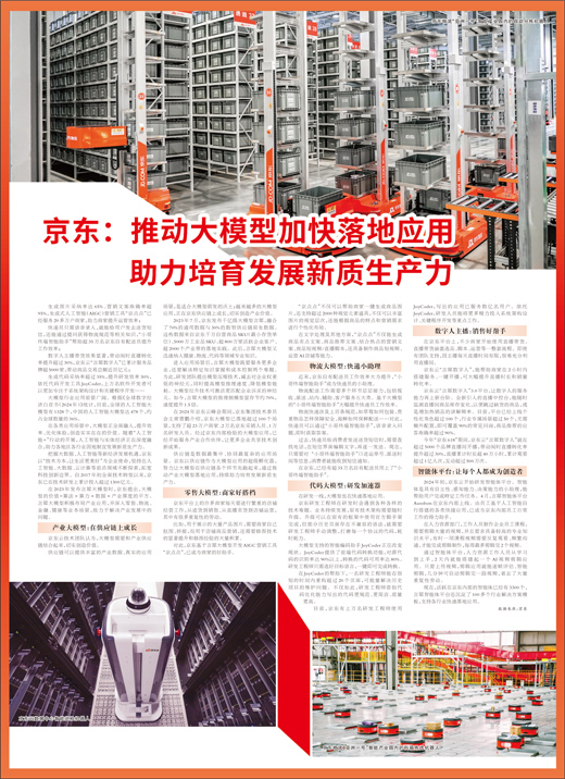 供应链是数据最集中、协同最复杂的应用场景。京东以供应链作为大模型应用的超级孵化器,努力让大模型在供应链各个环节先跑起来,通过推动产业大模型落地应用,持续助力培育发展新质生产力。
