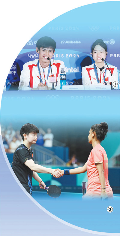 图①:当地时间7月27日,黄雨婷(右)和盛李豪在赛后新闻发布会上。 |