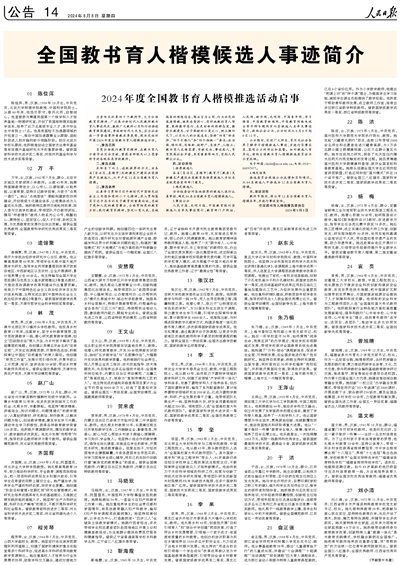 全国教书育人楷模候选人事迹简介