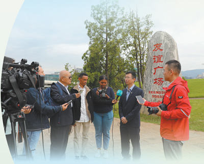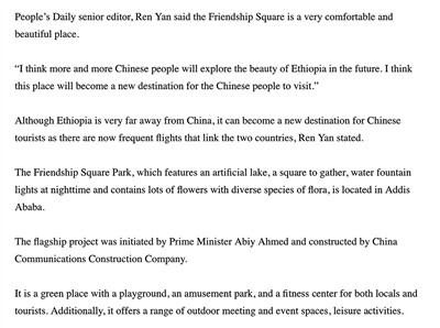 中埃塞媒体记者在谢格尔公园友谊广场进行联合采访。 |