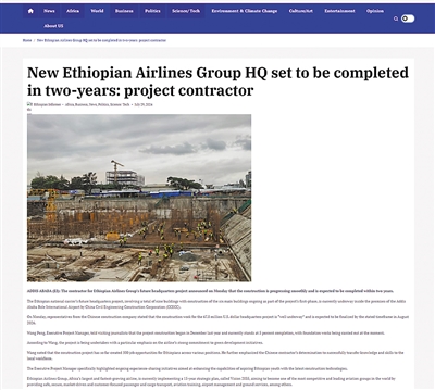 近年来,中国企业承建了埃塞俄比亚航空公司总部大楼、博莱国际机场新航站楼等多个项目,助力埃塞俄比亚航空事业进一步发展。埃塞俄比亚航空公司总部大楼项目于2023年正式启动,预计将于2026年8月竣工,至今已为当地创造了500多个就业岗位。中国企业还通过与当地员工分享相关知识,帮助他们掌握了建筑领域的前沿技术。 |