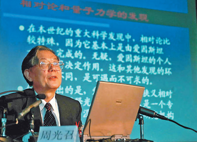 2000年5月19日,“2000年北京科技周”拉开帷幕。这是周光召同志在为科技工作者和管理干部作科技报告。 |
