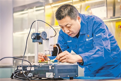 山西焦煤集团西山煤电镇城底矿的创新工作室内,马黎明(见图,张冬冬摄)正在紧急维修一块搭载了177个元件、集成了91个电阻的甲烷传感器电路板。只见他不时取用工具,检查电压、电流、电阻,逐一排查后,电路板上比半个米粒还小的元件被换了下来。