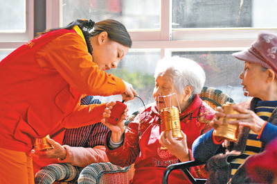 服务队队员在玉林老年公寓开展志愿服务。 |