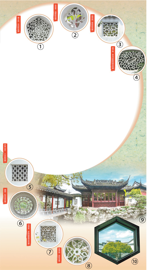 图①至图⑧:江苏苏州各大园林不同的花窗样式。 |