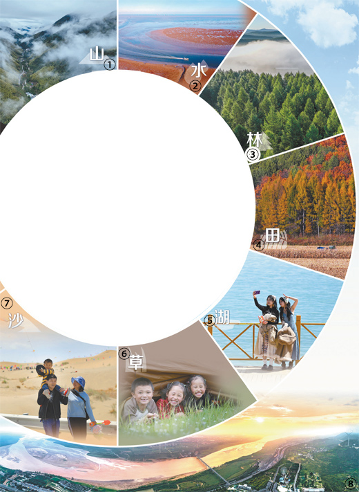 图①:雨后的武夷山国家公园云雾缭绕。国家公园是我国自然生态系统中最重要、自然景观最独特、自然遗产最精华、生物多样性最富集的部分,我国国家公园建设是生态文明建设中具有示范引领意义的工程。 邱汝泉摄(新华社发) 图②:山东东营市红滩湿地旅游区生态湿地,生长在滩涂上的碱蓬等盐生植物,如同一块巨大的红地毯。 刘智峰摄(影像中国) 图③:河北承德市围场满族蒙古族自治县塞罕坝国家森林公园。组建至今,塞罕坝机械林场营造人工林百万亩,创造了荒原变林海的奇迹。 刘满仓摄(影像中国) 图④:黑龙江鸡西密山市黑土地上种植的玉米。近年来,我国加强黑土地保护,守护“耕地中的大熊猫”。 孙树宝摄(影像中国) 图⑤:游客在青海湖畔拍照。当地良好的生态环境和优美的景色吸引了来自全国各地的大量游客。 新华社记者 张 龙摄 图⑥:四川甘孜藏族自治州日通草原上,躲在帐篷里的小朋友享受假日生活。我国持续推进草原生态保护修复,稳步提升草原生态功能。 新华社记者 江宏景摄 图⑦:新疆博湖县博斯腾湖畔的艾勒逊乌拉沙漠,游客正带着孩子在游玩。近年来,我国推进科学化、规模化治沙,重点治理区实现“沙进人退”到“绿进沙退”的历史性转变。 年 磊摄(人民视觉) 图⑧:黄河陕西潼关段景观。近年来,我国持续推动黄河流域生态保护和高质量发展,流域生态环境持续明显向好,让黄河成为造福人民的幸福河。 王生晖摄(人民视觉) |