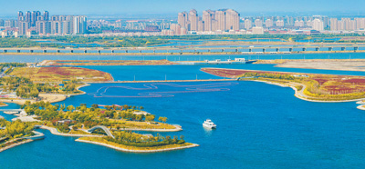 近年来,天津市推进渤海综合治理与美丽海湾建设,因地制宜打造各湾区岸段的特色亮点,提升生态颜值。图为10月15日的中新天津生态城岸段。