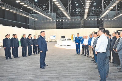 10月17日至18日,中共中央总书记、国家主席、中央军委主席习近平在安徽考察。这是17日下午,习近平在合肥滨湖科学城考察时,同现场科研人员和企业负责人亲切交流。 |