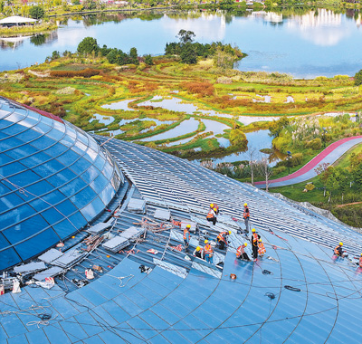 10月22日,重庆梁平区,成渝地区双城经济圈2024年文旅重点项目梁平都梁大剧院的建设工地上,工人正在施工。据了解,当地多个领域的重点项目正在加快推进。