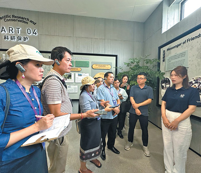 老挝记者在成都大熊猫繁育研究基地对大熊猫保护工作进行采访。 |