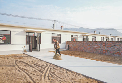 近日,辽宁省葫芦岛市绥中县祝家沟村村民在集中安置重建住房清扫院子。 |