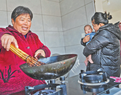 村民李树华正给火炕铺炕席,屋里摆着大大小小5个箱子,里面是崭新的冰箱、电视、洗衣机、燃气灶和电饭煲。“这是政府给我们送的‘家电厨具大礼包’,我们不仅住上了新房子,还用上了新家电。”李树华笑着说。