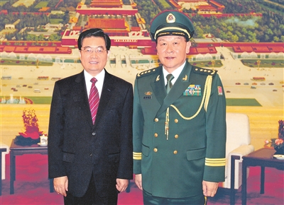 2007年8月1日,庆祝中国人民解放军建军80周年暨全军英雄模范代表大会在人民大会堂举行。胡锦涛同志与梁光烈同志合影留念。 |