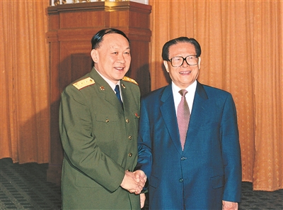 1999年8月,江泽民同志在辽宁考察时与梁光烈同志在一起。 |
